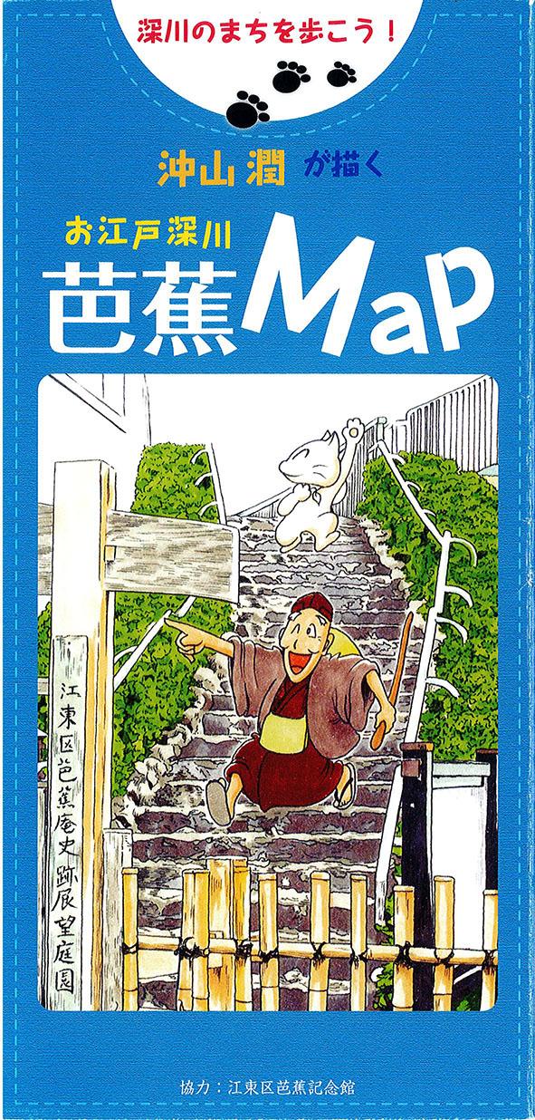 | 沖山潤が描く お江戸深川芭蕉マップ | 沖山潤が描く お江戸深川芭蕉マップを配布します ■絵 沖山潤(漫画家) ■協力 下町探偵団 ■配布場所 区内財団11施設、ティアラこうとう(江東区住吉2-28-36)、清澄庭園(江東区清澄3-3-9)、深川図書館(江東区清澄3-3-39)、深川東京モダン館(江東区門前仲町1-19-15)、ギャラリーコピス(江東区三好1-4-16)、東京都現代美術館(江東区三好4-1-1木場公園内) |