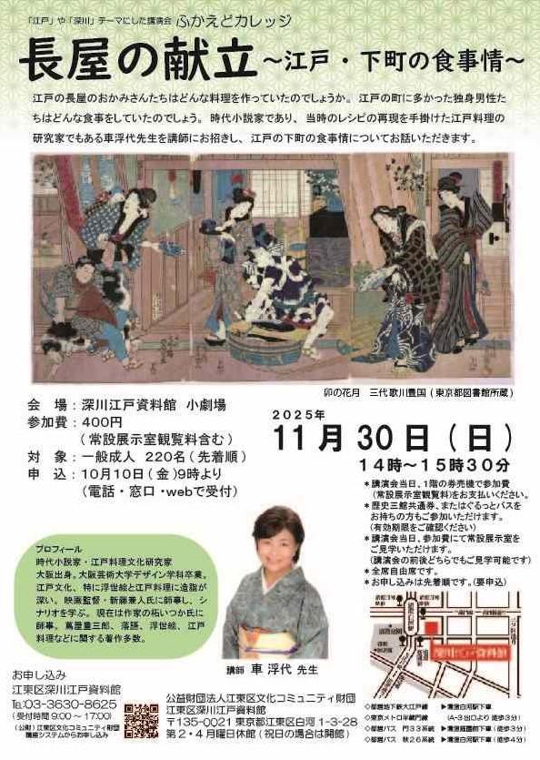 財団ホーム深川江戸資料館イベント・講座情報「長屋の献立~江戸・下町の食事情~」