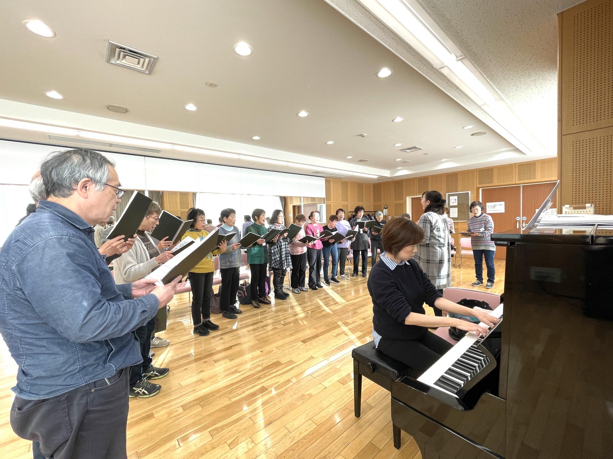 自主発声の練習から始め、童謡・唱歌を中心に世界の名曲及びその時々に流行った歌など色々なジャンルの曲...