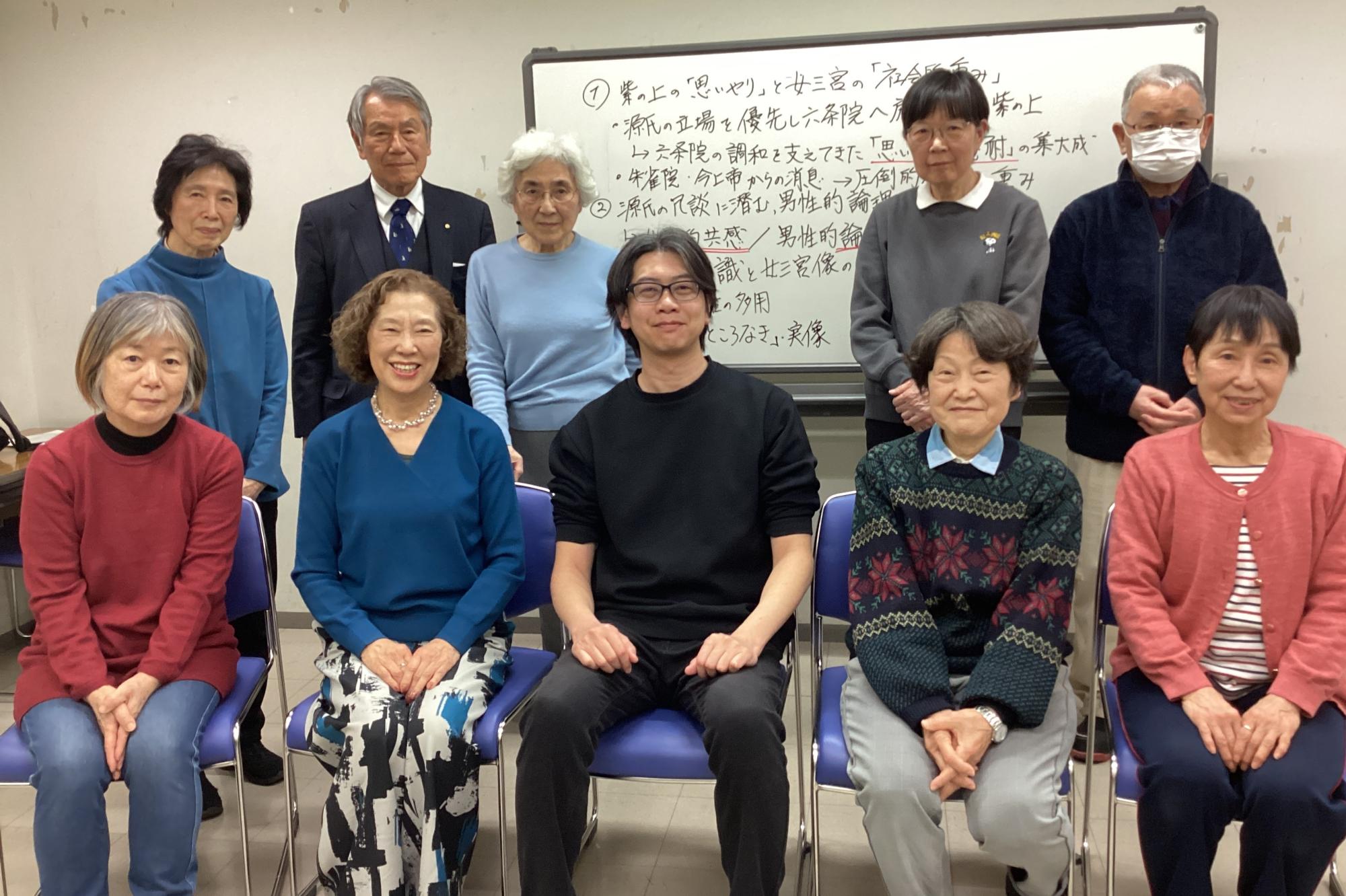 自主源氏物語(原文)を先生の解説と共に読んでいます。雰囲気は和気あいあい楽しく進めています。