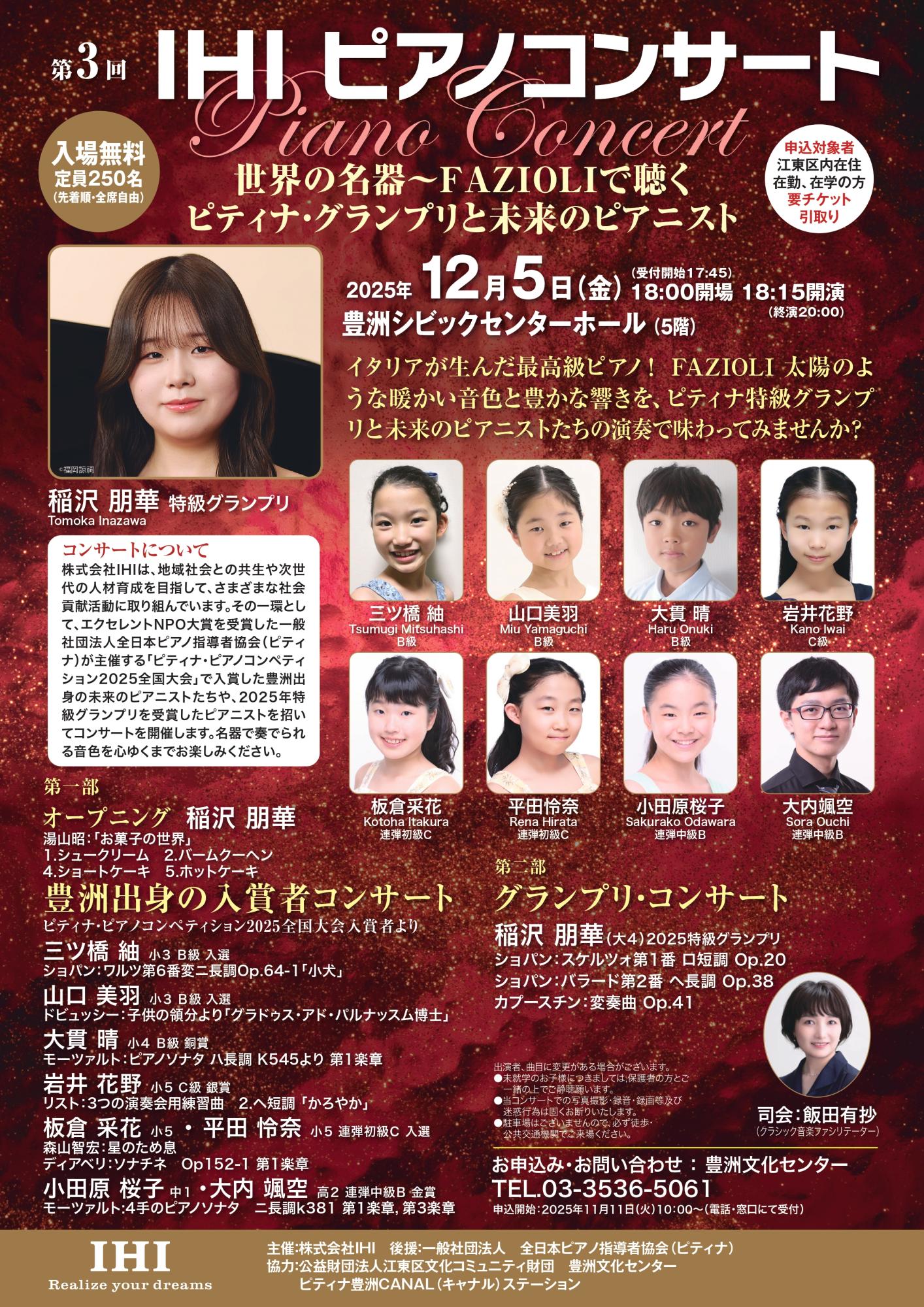 開催前音楽第3回IHIピアノコンサート2025年12月5日()豊洲シビックセンターホール
