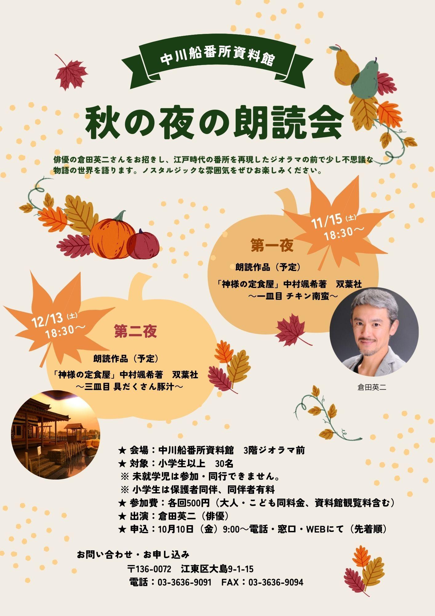 財団ホーム中川船番所資料館イベント・講座情報秋の夜の朗読会