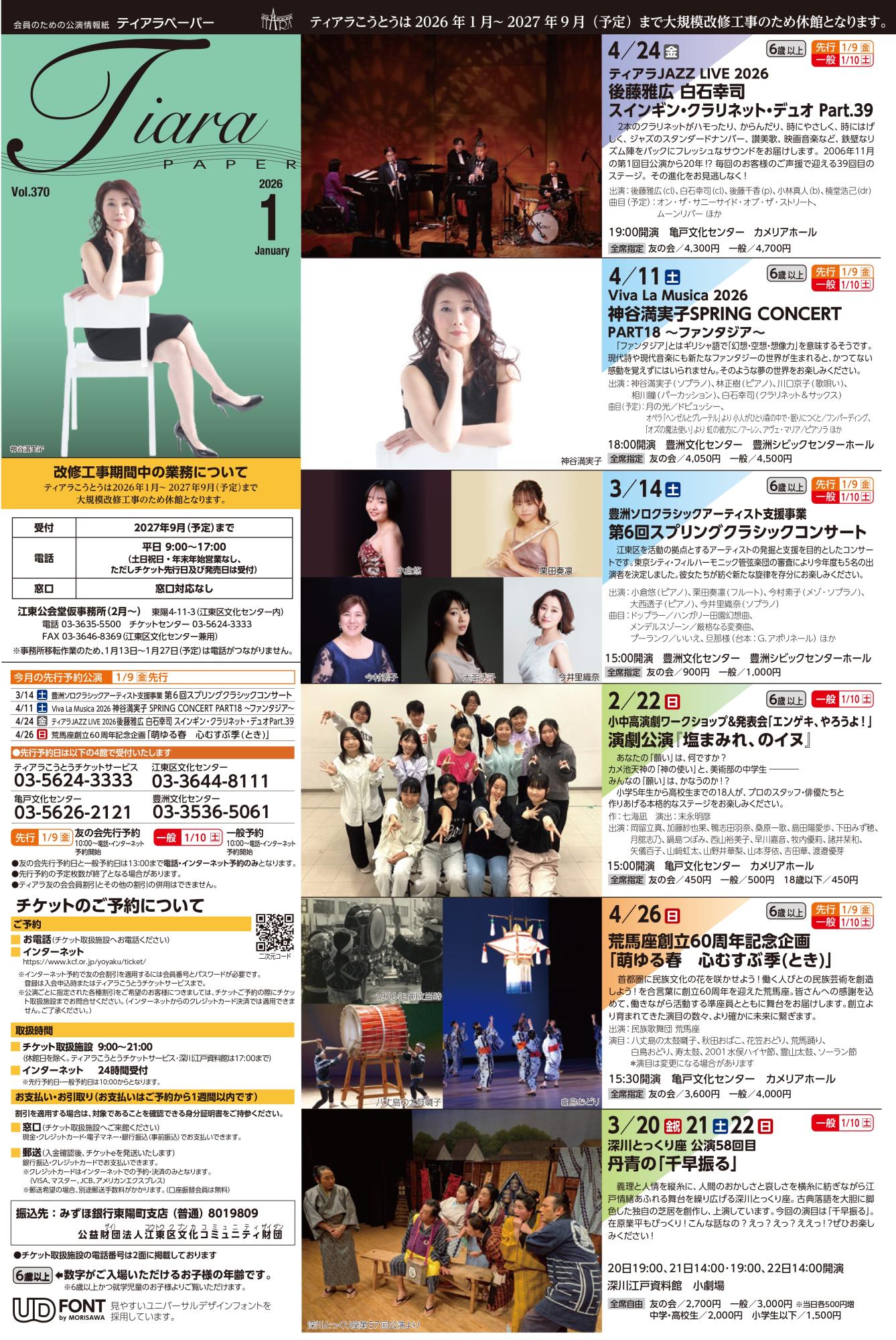公演情報紙「ティアラペーパー」は毎月原則1日に発行しています。
